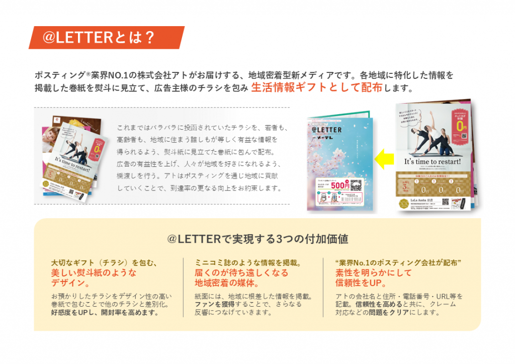 ポスティング®業界NO.1(※1)の株式会社アトがお届けする、地域密着型新メディアです。